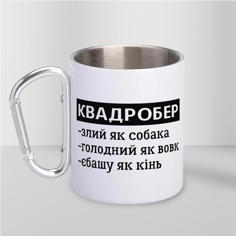 Кружка металева з карабіном "квадробер чоловік" 300 мл біла|швидка доставка|