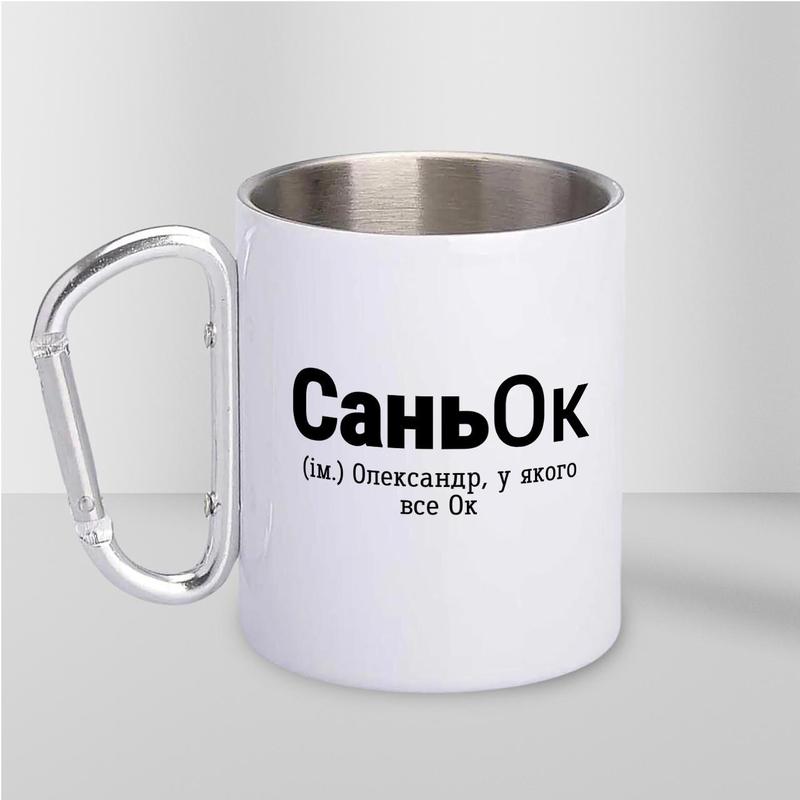 Кружка металева з карабіном "саньок" 300 мл біла|швидка доставка|