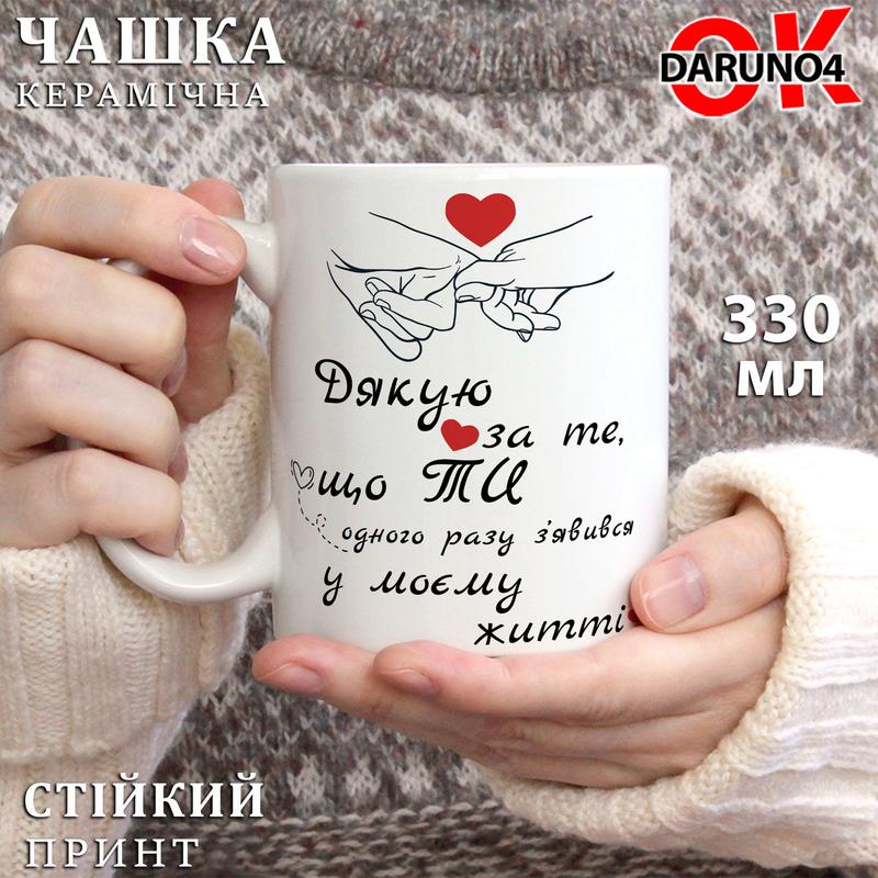Чашка з друком - "дякую за те, що ти одного разу з'явився в моєму житті"
