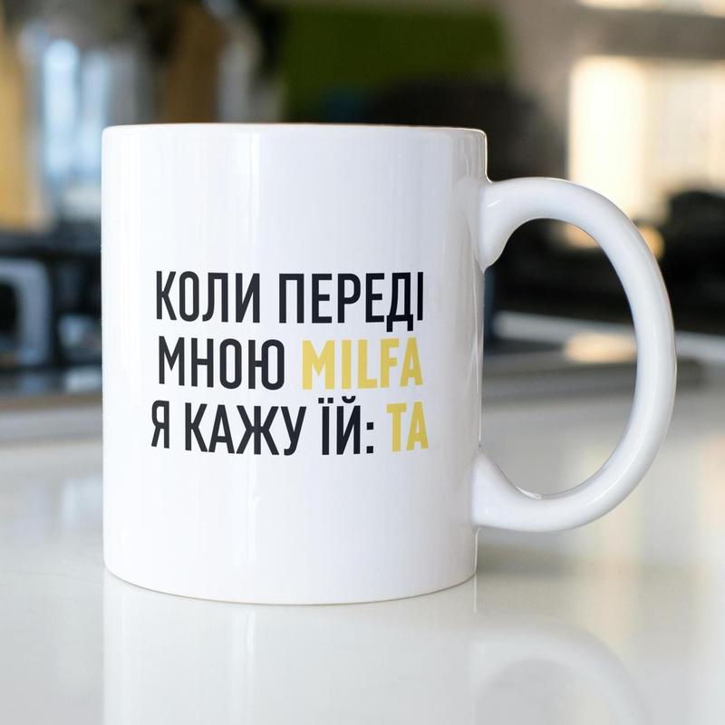 Кружка керамічна з принтом "milfa" 330 мл біла|ціна-якість|