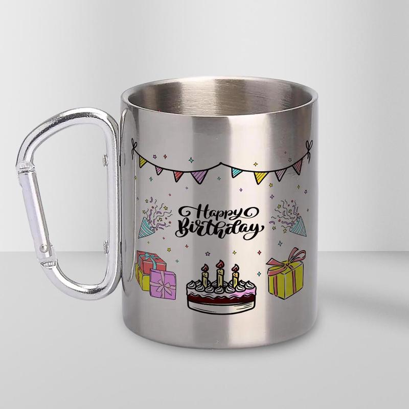 Кружка металева з карабіном "happy birthday" 300 мл срібляста|ціна-якість|