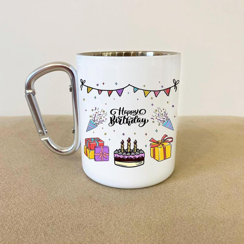 Кружка металева з карабіном "happy birthday" 300 мл біла|ціна-якість|