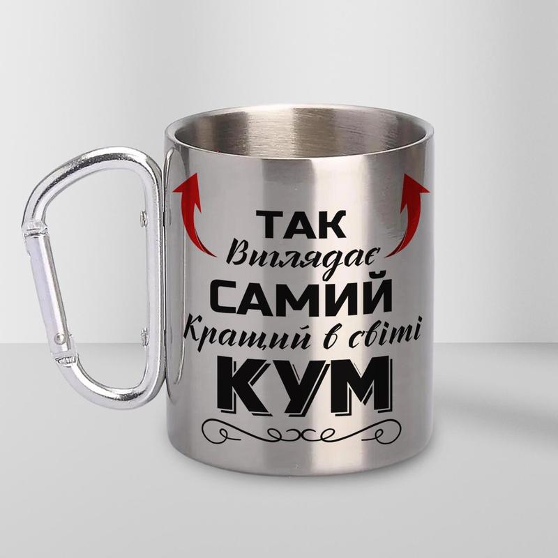 Кружка металева з карабіном "так виглядає самий кращий кум" 300 мл срібляста|ціна-якість...