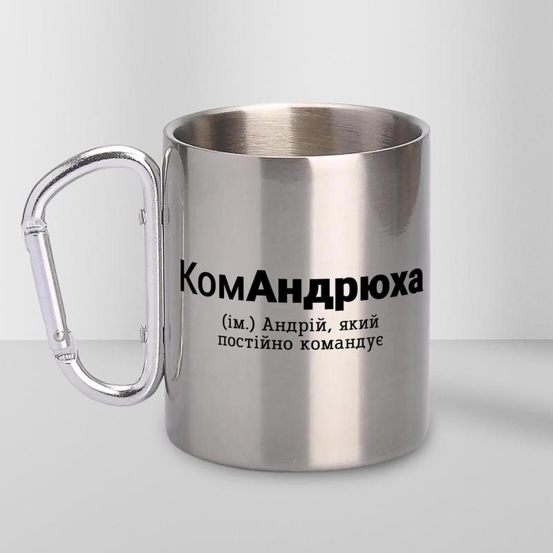 Кружка металева з карабіном "командрюха" 300 мл срібляста|знижка|