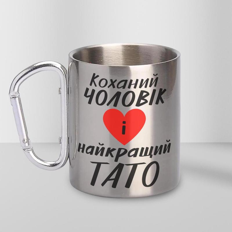 Кружка металева з карабіном "коханий чоловік і найкращий тато" 300 мл срібляста|знижка|