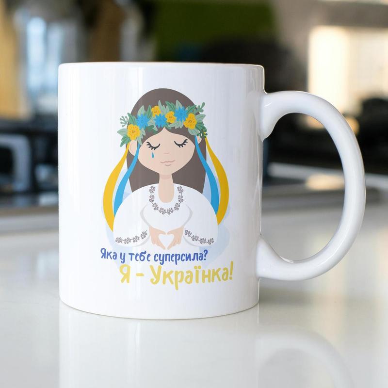 Кружка з принтом "супер сила українка" 330 мл біла|знижка|
