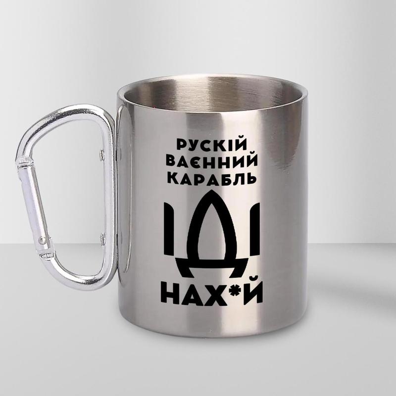 Кружка металева з карабіном "рускій карабль нах" 300 мл срібляста|знижка|