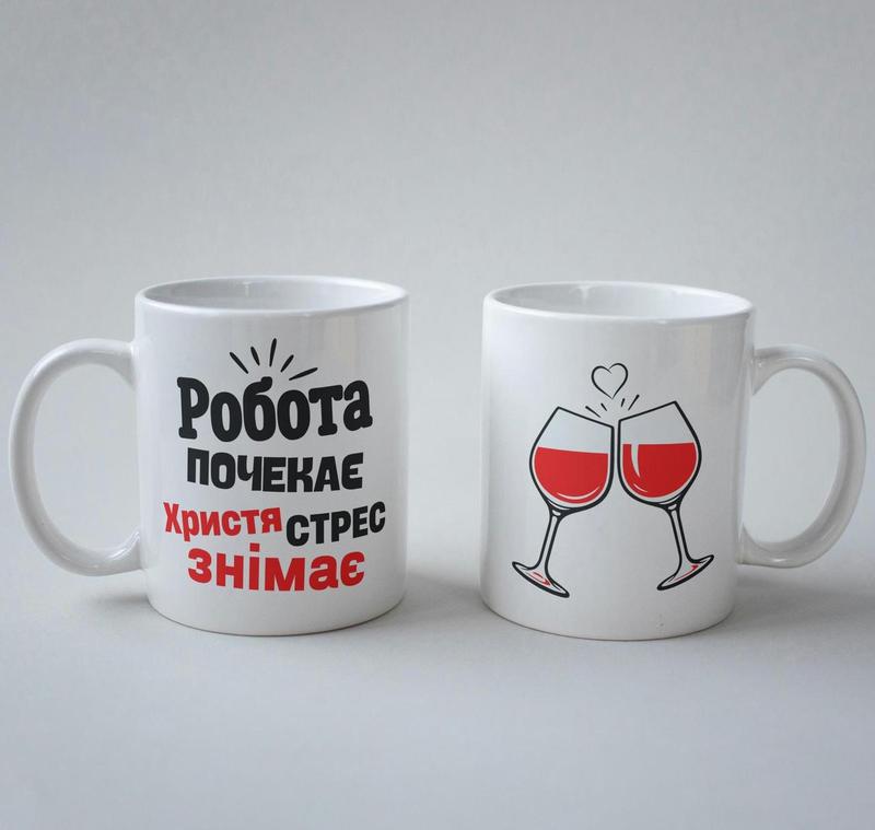 Кружка з принтом "христя стрес знімає" 330 мл біла|знижка|