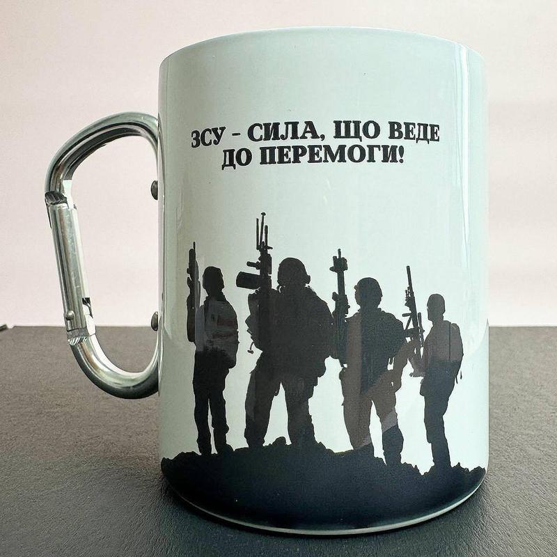 Кружка металева з карабіном "зсу сила що веде до перемоги" 300 мл біла|вигідна ціна|