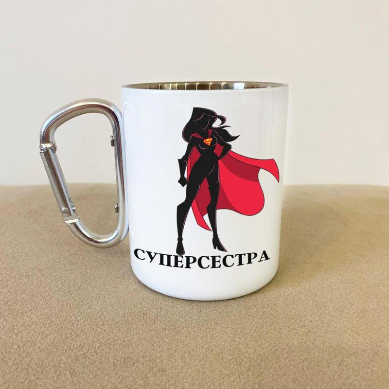 Кружка металева з карабіном "суперсестра" 300 мл біла|вигідна ціна|