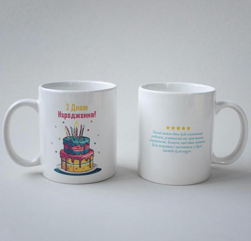 Кружка з принтом "з днем народження" 330 мл біла|вигідна ціна|