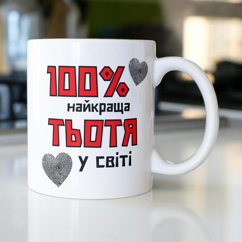 Кружка керамічна з принтом "100% найкраща тьотя" 330 мл біла|вигідна ціна|