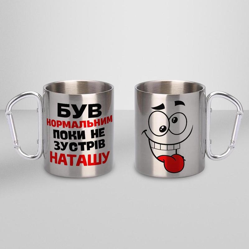 Кружка металева з карабіном "був нормальним поки не зустрів наташу" 300 мл срібляста|вигід...