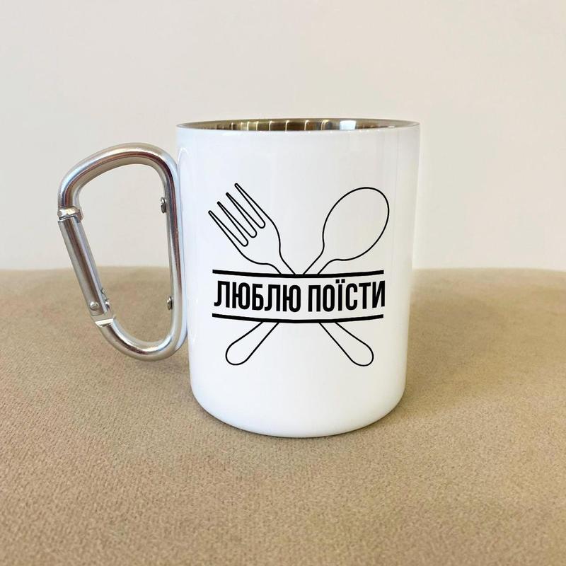 Кружка металева з карабіном "люблю поїсти" 300 мл біла|вигідна ціна|