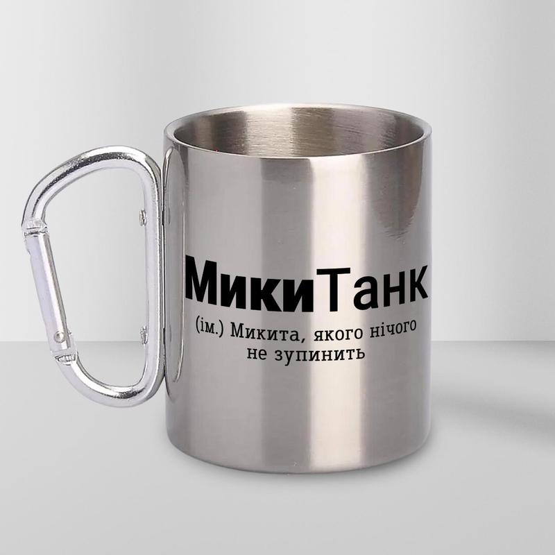 Кружка металева з карабіном "микитанк" 300 мл срібляста|вигідна ціна|