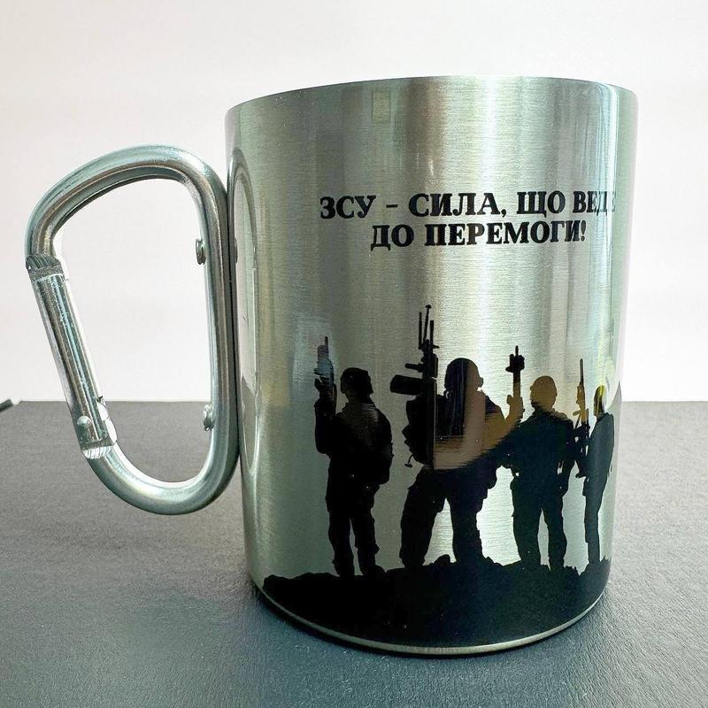 Кружка металева з карабіном "зсу сила що веде до перемоги" 300 мл срібляста|вигідна ціна|