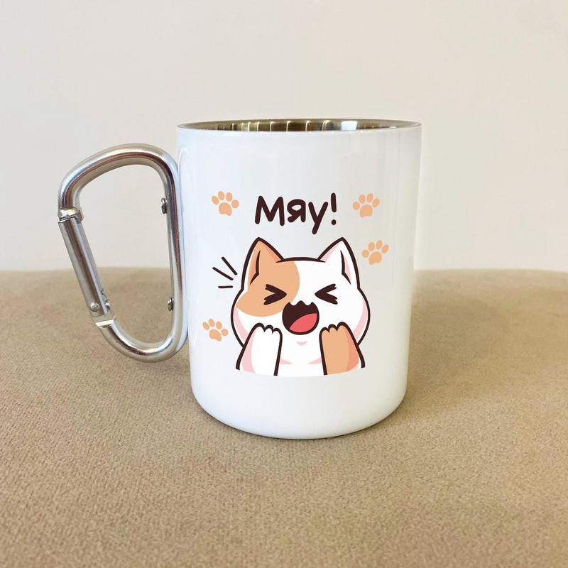 Кружка металева з карабіном "мяу" 300 мл біла|вигідна ціна|