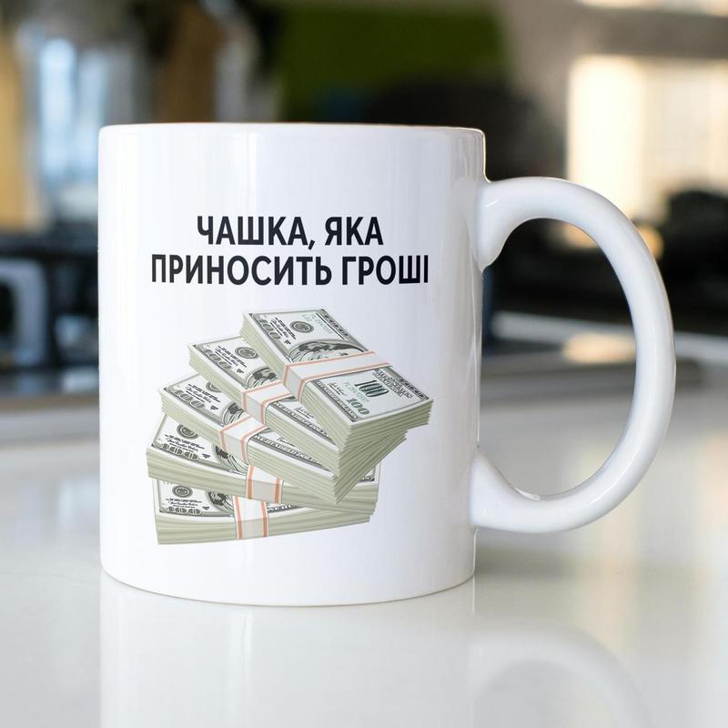 Кружка з принтом "чашка яка приносить гроші" 330 мл біла|вигідна ціна|