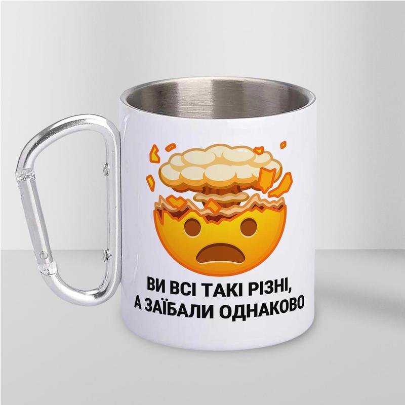 Кружка металева з карабіном "ви всі такі різні а заїбали однаково" 300 мл біла|вигідна ці...