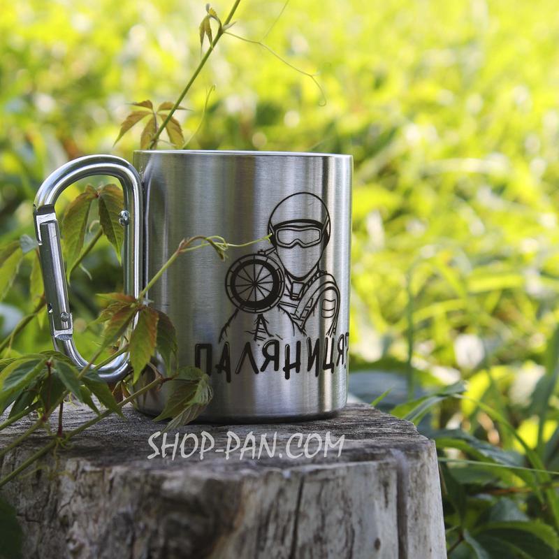 Металева чашка 250 мл із карабіном і гравіюванням — паляниця
