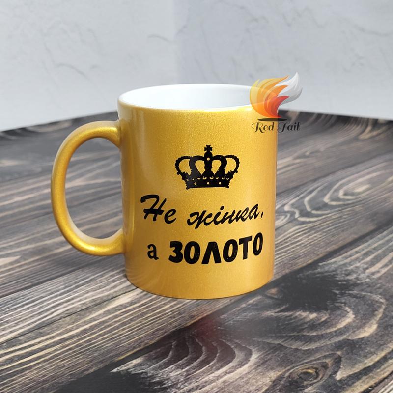 Чашка подарункова "не жінка, а золото" 330 мл перламутрова золота