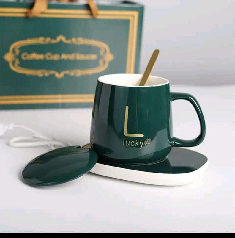 Керамическая чашка "green lucky" с подставкой- подогревателем