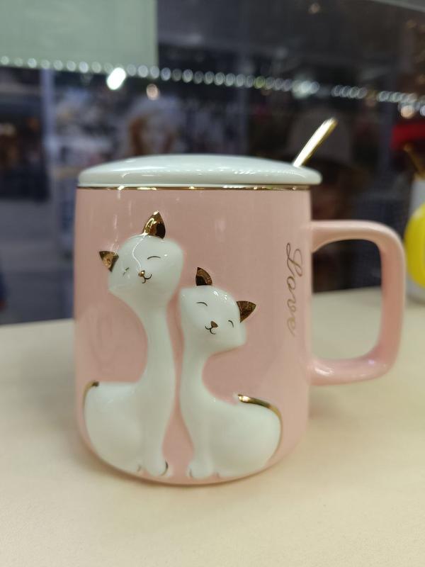 чашка для чаю, чашка з кришкою, чашка з ложкою, чашка рожева з котами ,чашка блакитна з котами чашка дуже гарна, висока якість,