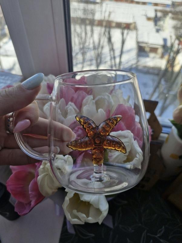 прозрачная чашка с морской звездочкой