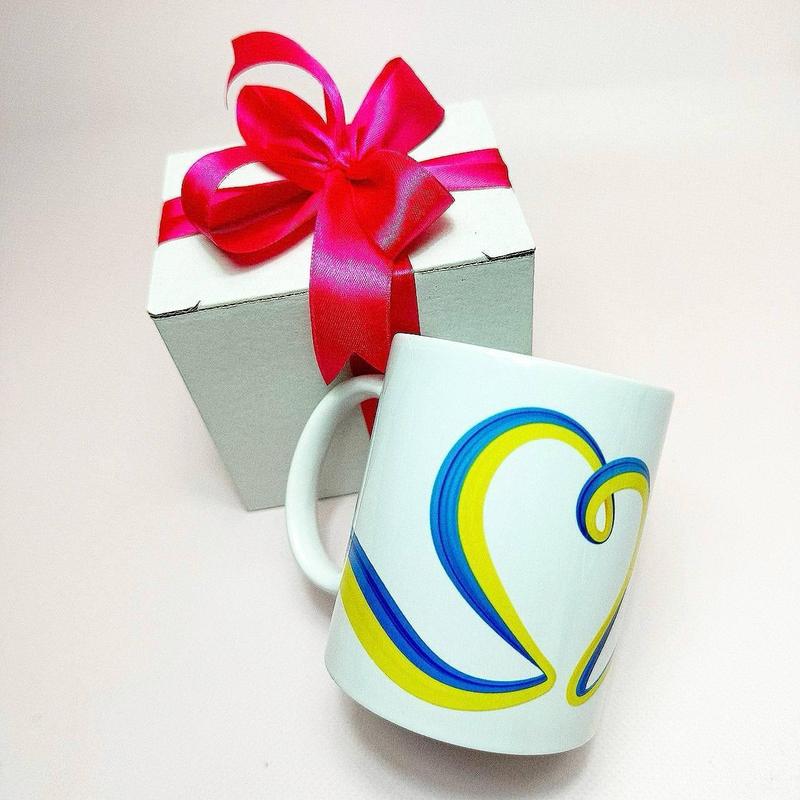 Кружка керамічна з принтом "прапор україни" 330 мл у подарунковій коробці з бантом