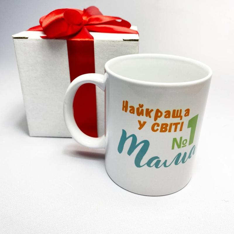 Кружка керамічна з принтом "найкраща у світі мама" 330 мл у подарунковій коробці з бантом