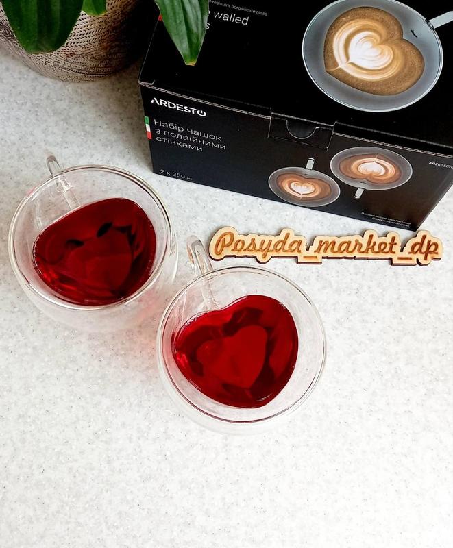 Набір чашок із ручками серце ardesto 300 мл 2 шт. із подвійними стінками