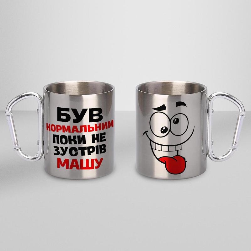 Кружка металева з карабіном "був нормальним поки не зустрів машу" 300 мл срібляста |швидка...