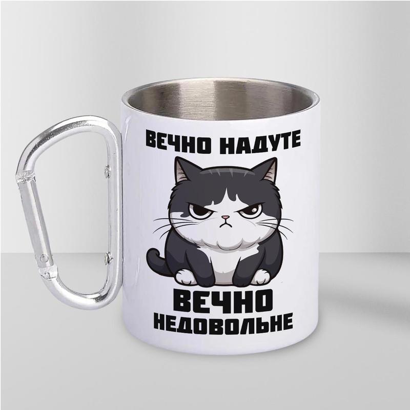 Кружка металева з карабіном "вєчно недовольне" 300 мл біла|швидка доставка|