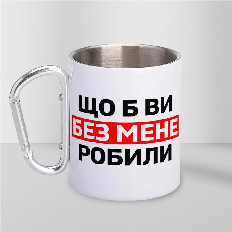 Кружка металева з карабіном "що б ви без мене робили" 300 мл біла|швидка доставка|