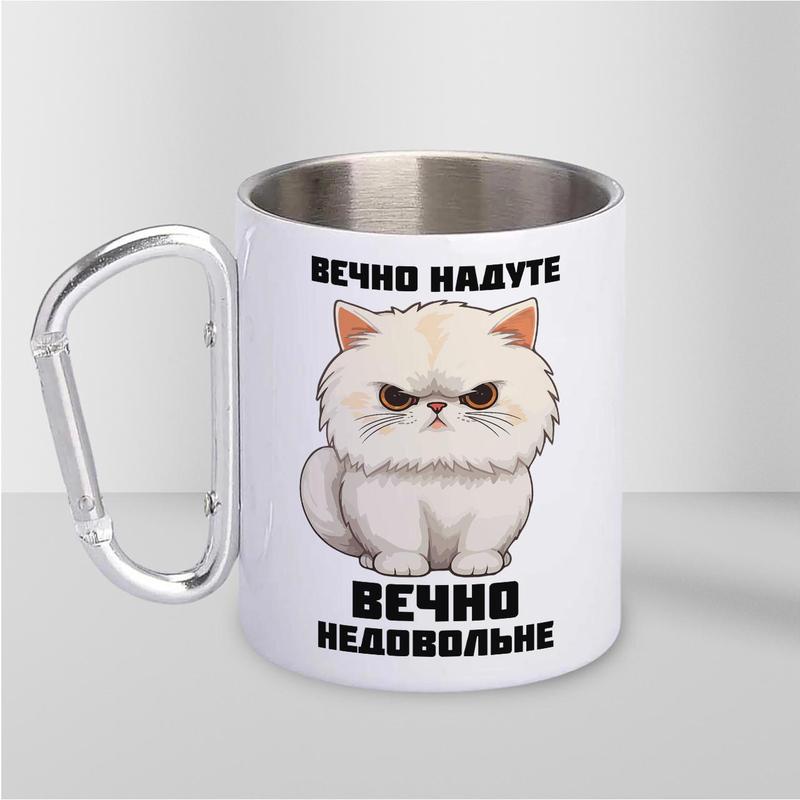 Кружка металева з карабіном "вєчно недовольне" 300 мл біла|швидка доставка|