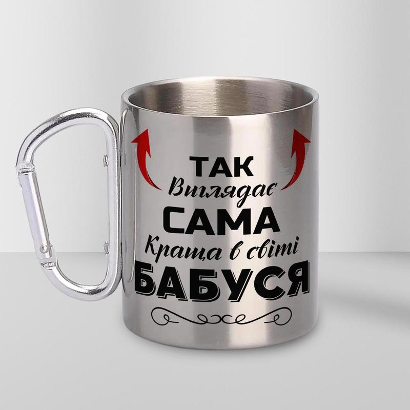 Кружка металева з карабіном "так виглядає сама краща бабуся" 300 мл срібляста|швидка доста...