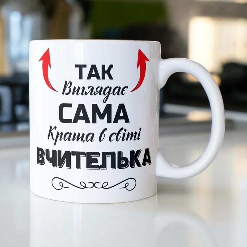 Кружка керамічна з принтом "так виглядає сама краща в світі вчителька" 330 мл біла|швидка...