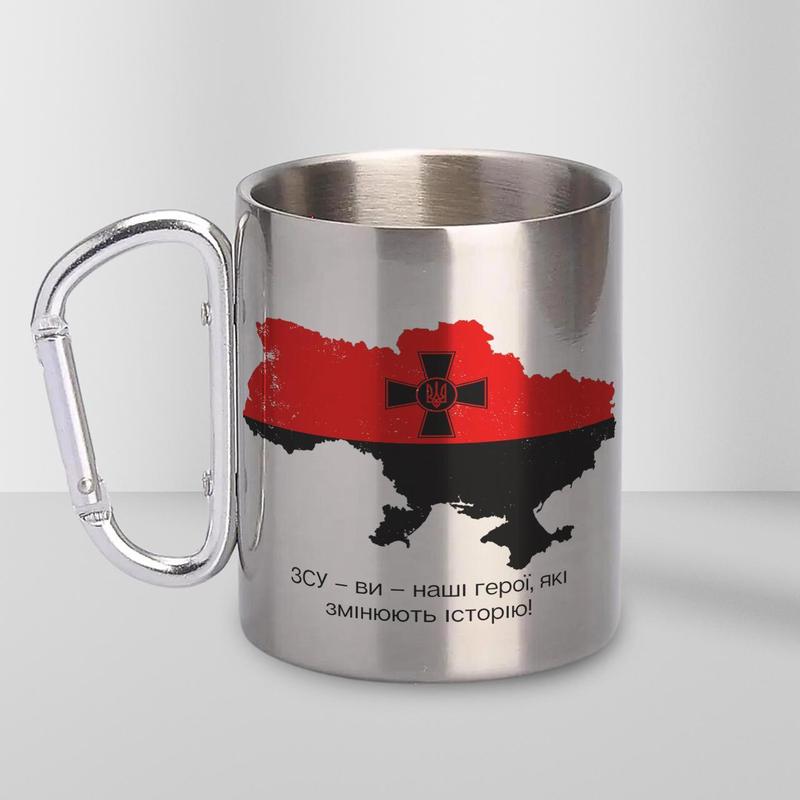 Кружка металева з карабіном "зсу наші герої" 300 мл срібляста|швидка доставка|
