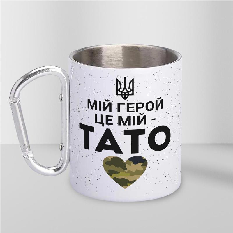 Кружка металева з карабіном "мій герой це мій тато" 300 мл біла|швидка доставка|