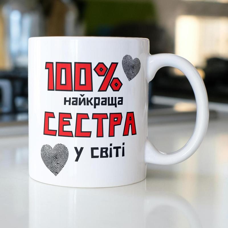 Кружка керамічна з принтом "100% найкраща сестра" 330 мл біла|швидка доставка|