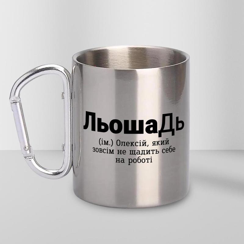Кружка металева з карабіном "льошадь" 300 мл срібляста|швидка доставка|