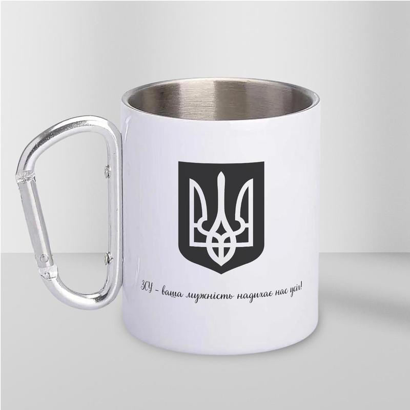 Кружка металева з карабіном "зсу мужність" 300 мл біла |швидка доставка|