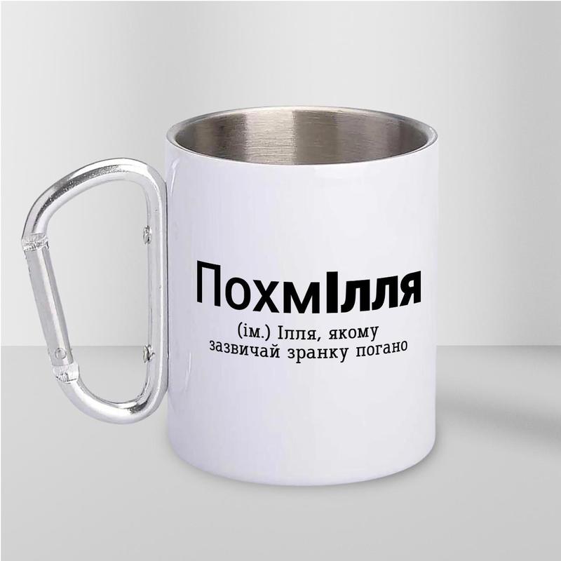 Кружка металева з карабіном "похмілля" 300 мл біла |швидка доставка|