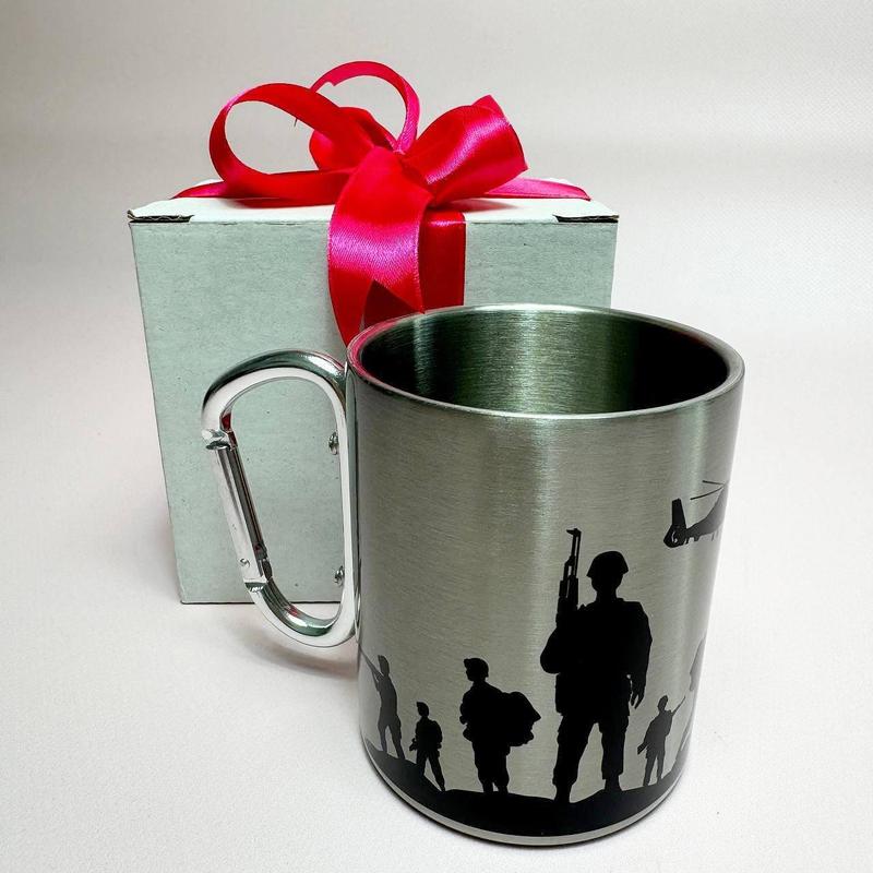 Кружка металева з карабіном "зсу сила що веде до перемоги" 300 мл у подарунковій коробці з...