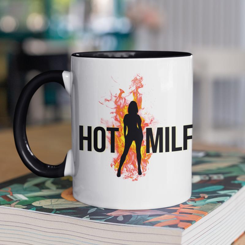 Чашка керамічна з принтом "hot milf" 330 мл, біла з чорною ручкою