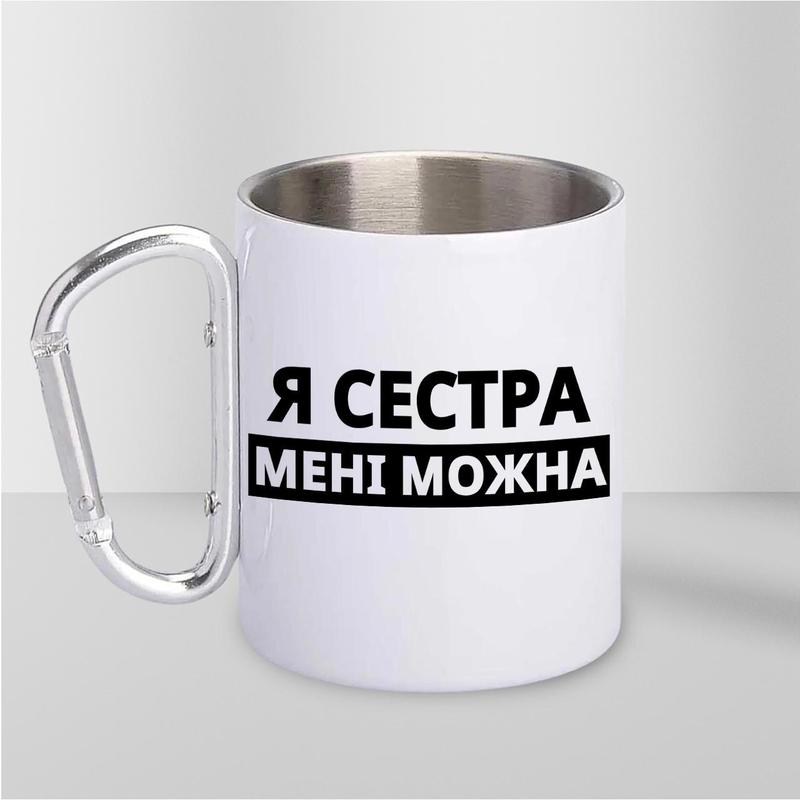 Чашка металева з принтом "я сестра мені можна" 300 мл з карабіном, біла
