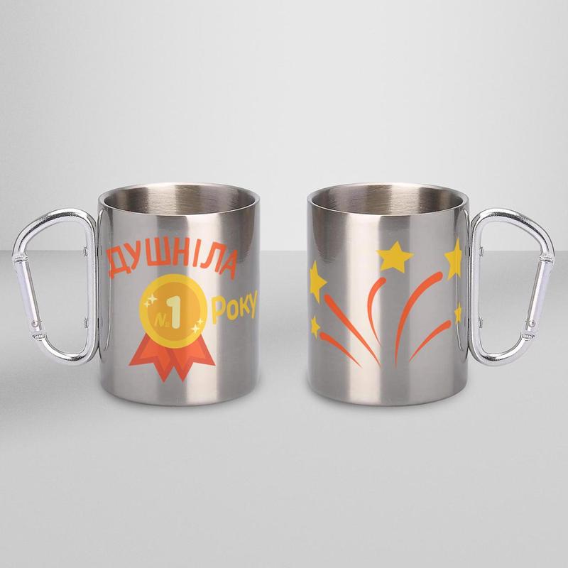 Кружка металева з карабіном "душніла року" 300 мл срібляста |швидка доставка|