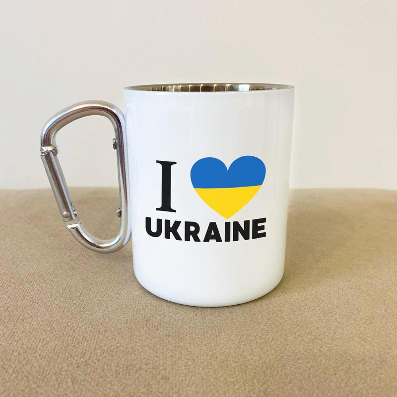 Кружка металева з карабіном "i love ukraine" 300 мл біла|швидка доставка|