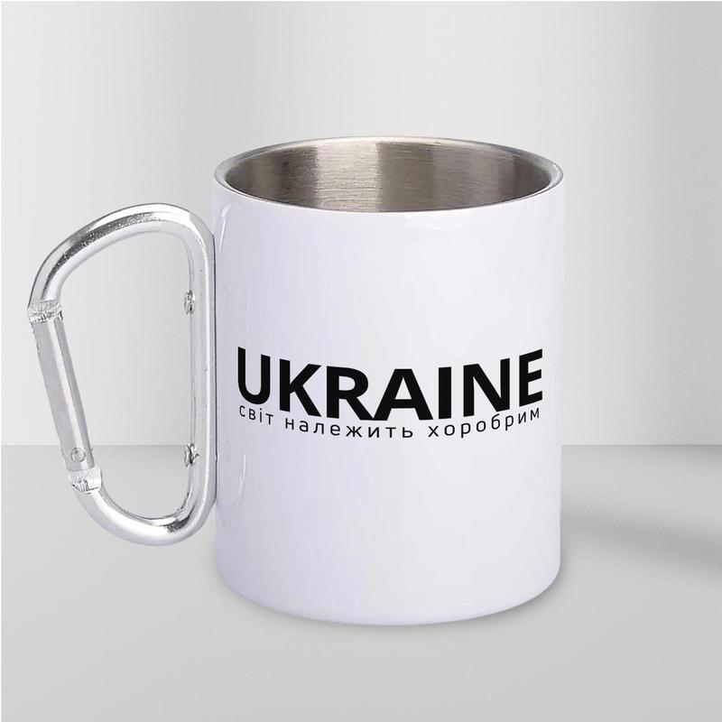 Кружка металева з карабіном "ukraine світ належить хоробрим" 300 мл біла|швидка доставка|
