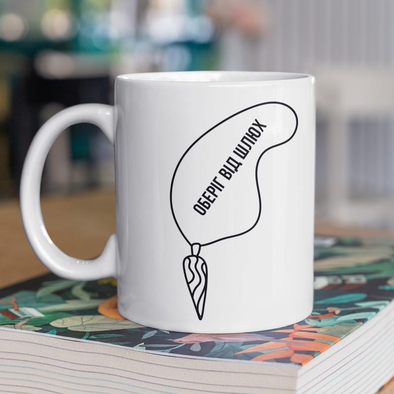 Чашка керамічна з принтом "оберіг від шлюх" 330 мл, біла